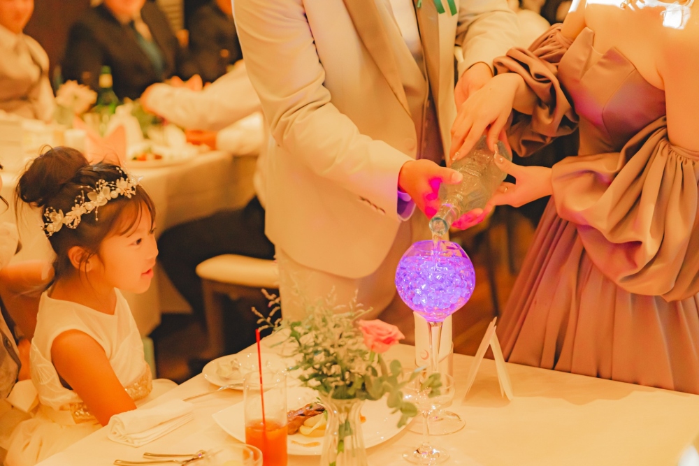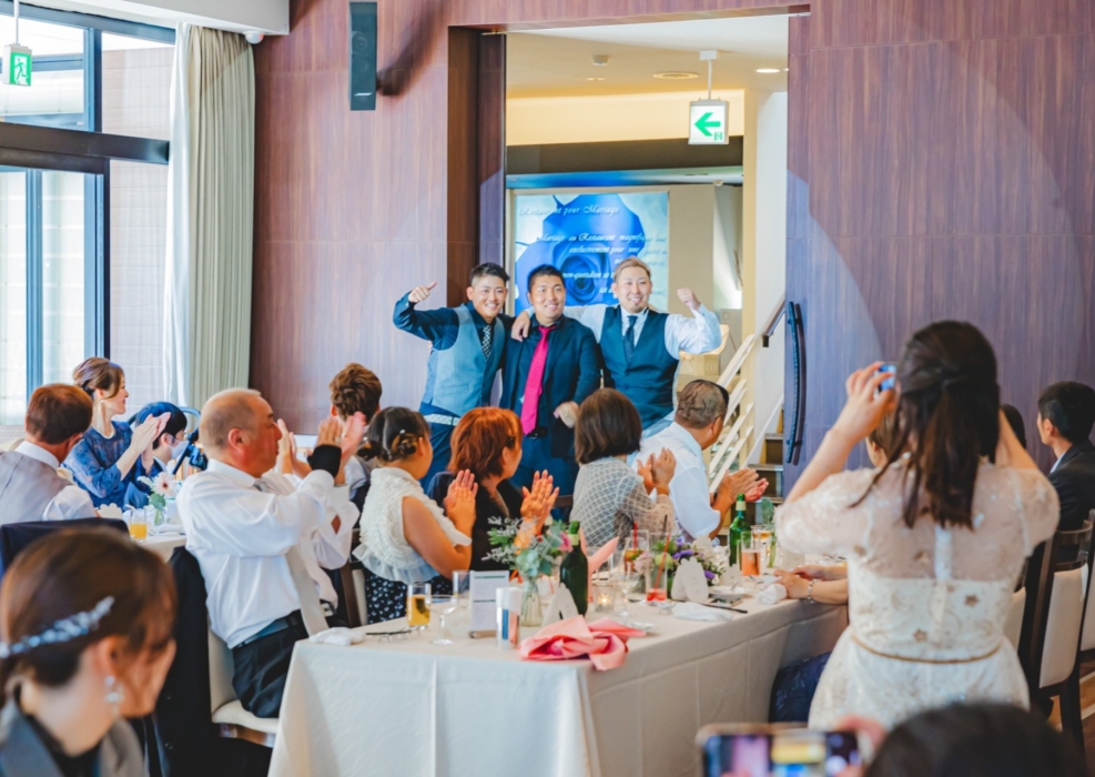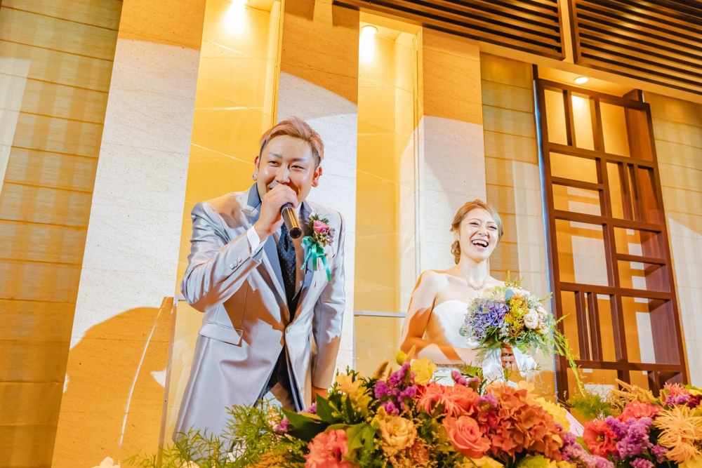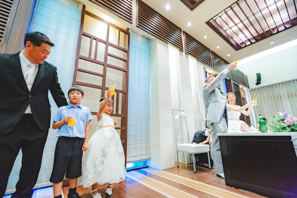 お二人のご親族様には小さいお子様がたくさんいらっしゃったので、お子様たちの登場シーンもたくさん作りました。打合せの際にはいつも楽しいことを言って場を和ませてくれたSeiyaさん。新婦様と一緒にたくさん笑わせて頂きました。ご主賓の挨拶を頂いている際の涙を拝見した時、「本当に優しい方なんだな。いつもたくさん笑わせてくれたのは私たちのことを思ってのことだったんだな」と私も涙が溢れてきそうになりました。